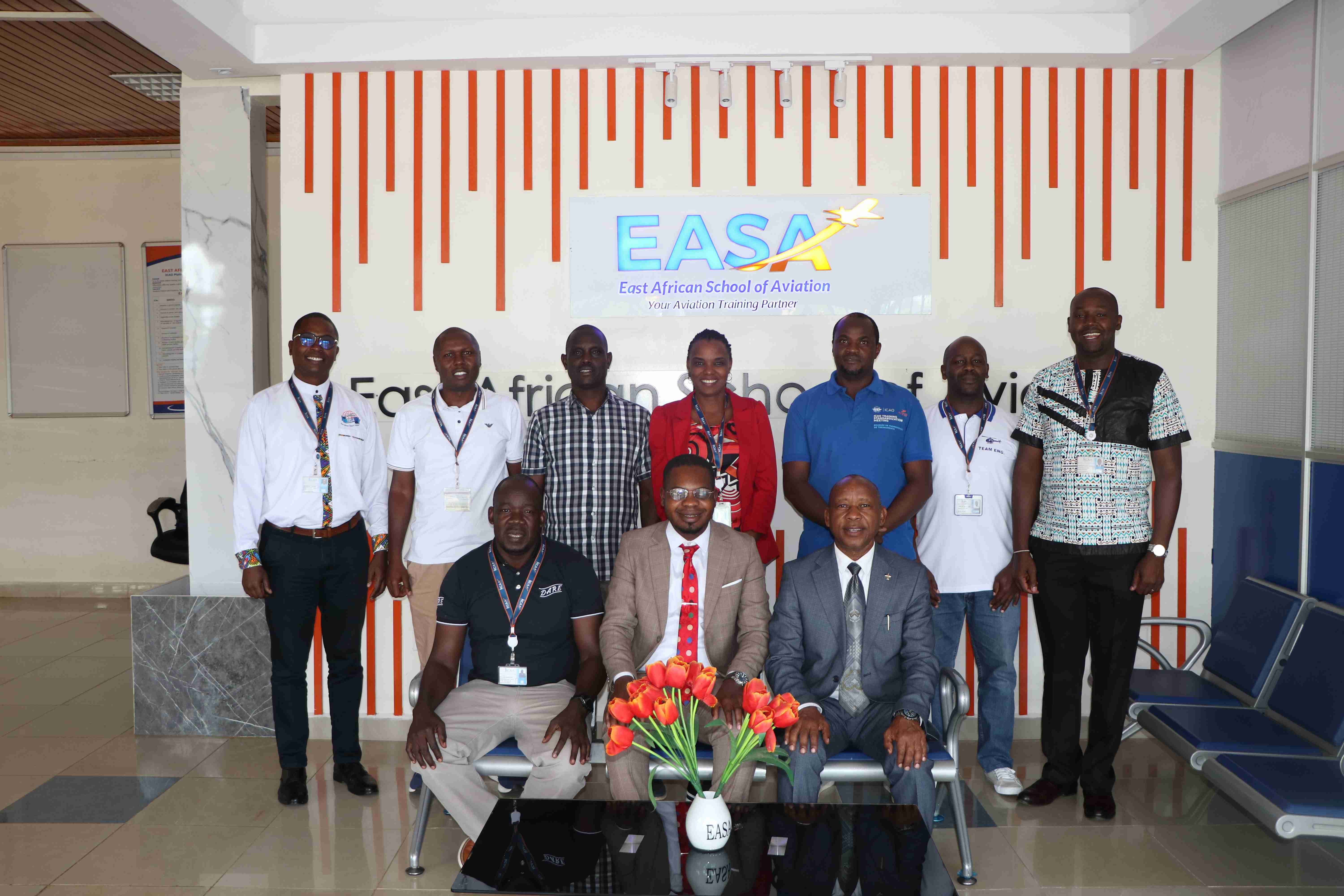 The Director of the East African School of Aviation, Dr. Serah Waitiki, flanked by the Deputy Director, Aviation Training Mr. Julius Nzyoka, alongside EASA Management, officially received the CEO of Epikaizo University, Mr. Miparra Ossiele John, for discussions on academic and technical collaboration.